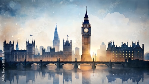 Fototapeta premium Big Ben & London Cityscape: Contemporary Minimalist Double Exposure Collage Art