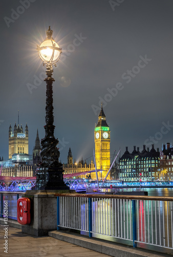 © moofushi, Fototapeta premium Big Ben und Westminster bei Nacht gesehen von der Southbank in London