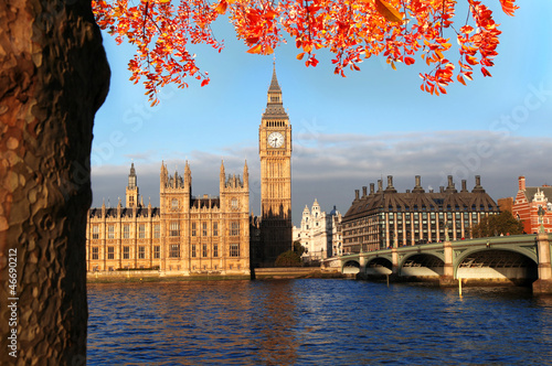 Fototapeta premium Big Ben with bridge in autumn, London, UK