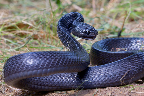 © DS light photography, Obraz premium Big black boiga snake attack aggressively
