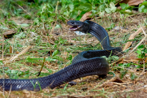 © Riadi, Obraz premium Big black boiga snake attack aggressively