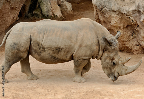 © insideportugal, Fototapeta premium Big black rhinoceros in a natural environment