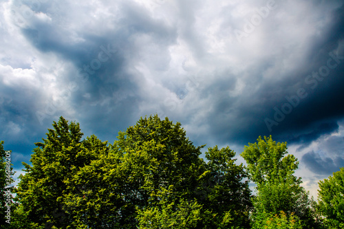 © Елена Дроздова, Obraz premium Big blue cloud over the trees