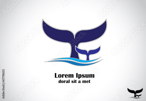 Obraz premium big blue tail of large whale shark with baby diving into ocean