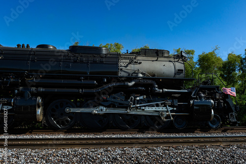 © hkuchera, Naklejka premium Big Boy Locomotive Steams By Under Clear Skies