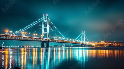 © Gadirov, Obraz premium Big bridge at night in Baku, Azerbaijan. Long exposure