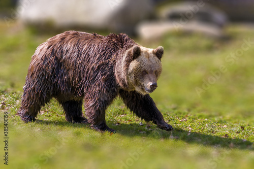 © Mario Plechaty, Fototapeta premium Big Brown bear at nature meadow