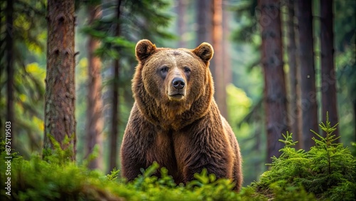 © Sujid, Obraz premium Big brown bear in the forest, wildlife, nature, animal, mammal, predator, grizzly, wilderness, fur