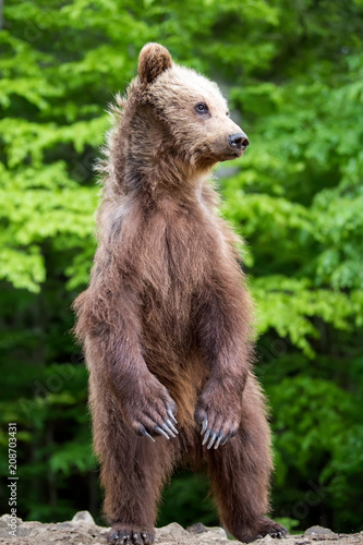 © byrdyak, Fototapeta premium Big brown bear standing on his hind legs