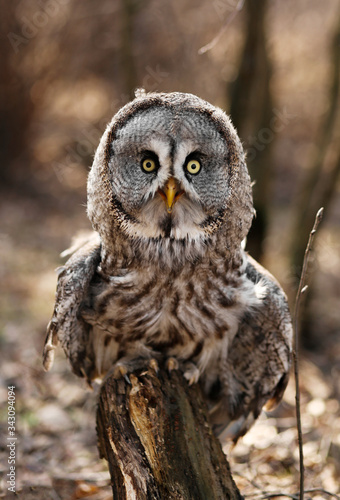 © Альбина Хусаинова, Obraz premium Big brown owl on blurry background
