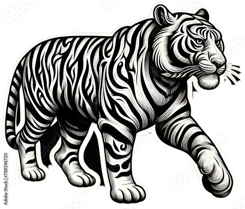 © Jiko, Naklejka premium Big cartoon Tiger in black and white