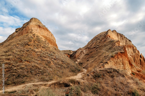 © YarikL, Fototapeta premium Big cave canyon in the Kherson region on the bank of the estuary. Village Stanislav.