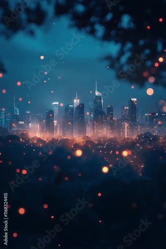 © Akash, Fototapeta premium big city skyline illuminated with vibrant tech overlays and smart connections