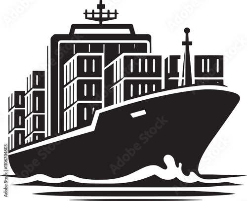 © Md Hasan, Obraz premium Big container ship silhouette vector illustration isolated on a white background