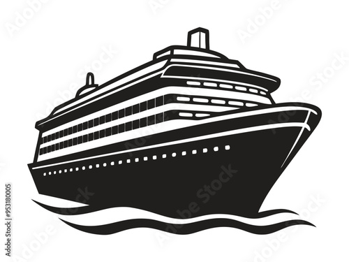 © design vector, Obraz premium Big cruise ship clip art. Flat monochrome vector illustration