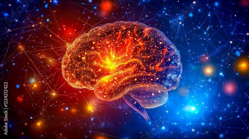 Fototapeta premium Big data and artificial intelligence concept. Human brain glowing from...
