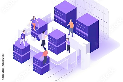 Fototapeta premium Big data Banner, vector illustration. Information storage and analysis system. Digital technology - generative ai