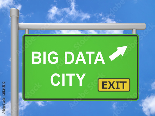 Fototapeta premium Big Data City Road Sign 3d Illustration