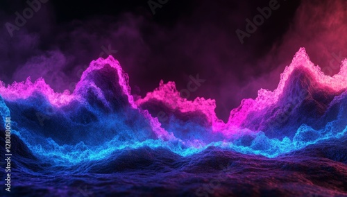 Fototapeta premium Big data is represented through a futuristic abstract background consisting of cybernetic patterns, shimmering particles, and dynamic waves created by points and lines in a 3D setting