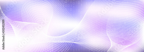 © ingara, Naklejka premium Big Data Stream. Pink Particle Motion. Violet
