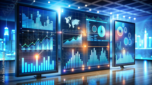 © suwatthana, Obraz premium Big data technology and analytics concept, showing a digital interface with graphs and charts, big data