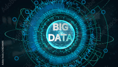© SergeyBitos, Obraz premium Big data visualization, abstracrt fractal element with lines and energy power. Big data connection. Data array visual concept. Graphic abstract background. Vector illustration