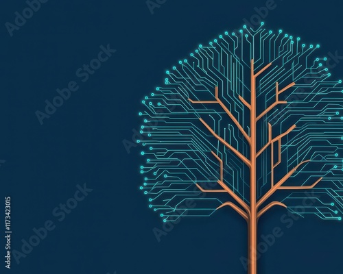 Naklejka premium Big data visualization as a digital tree growing from code, machine learning,...