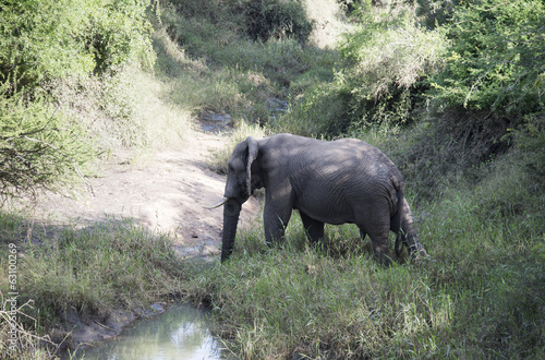 © Chris Willemsen, Fototapeta premium big elephant crossing the river