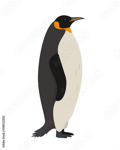 © Елена Истомина, Fototapeta premium Big Emperor or King penguin, bird of Antarctica. Penguin icon isolated on white background. Flat or cartoon nature animal vector illustration.