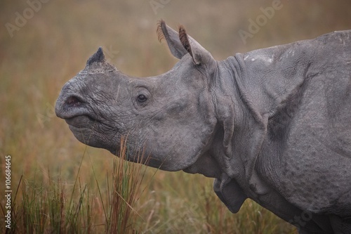 Naklejka premium Big endangered indian rhinoceros in Kaziranga National Park/Big endangered indian rhinoceros in Kaziranga National Park