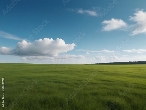 Obraz premium Big Field Of Green Grass With Cloudy Blue Sky - Generative Ai