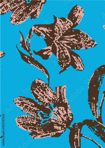 © DESIGN CENTER, Naklejka premium Big flowers pattern, upscale floral pattern. graphical textures floral, trendy colors pattern , flowers background with leaves. vector illustration.