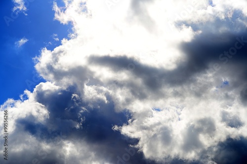 © bokstaz, Fototapeta premium Big fluffy white and dark clouds in the blue sky