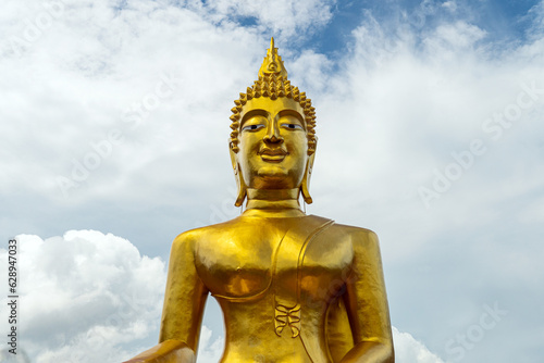 © diy13, Fototapeta premium Big golden buddha statue on mountain with cloud in morning Pattaya Thailand.
