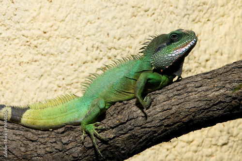 © Ints, Obraz premium Big green lizard sleeping on the branch