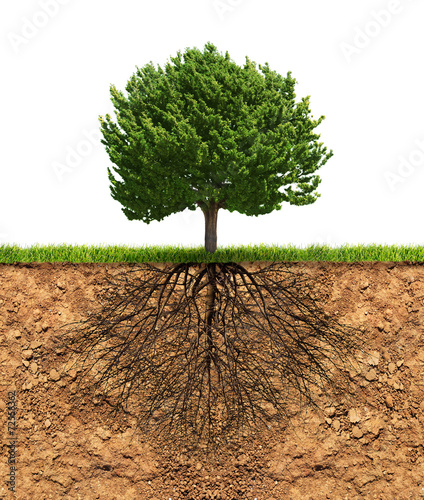 © Anterovium, Fototapeta premium Big green tree with roots beneath