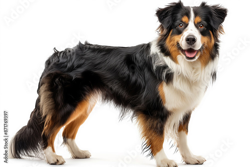 Fototapeta premium Big happy Australian Shepherd dog standing isolated on white background