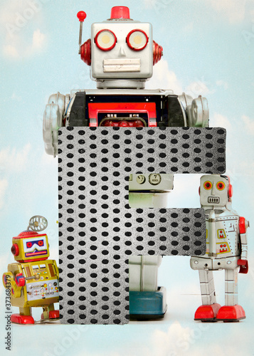 © charles taylor, Fototapeta premium big letter F retro robot poster