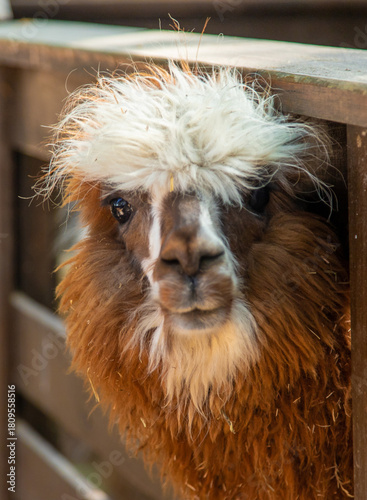 © yanadjan, Naklejka premium Big llama in the zoo. Selective focus.