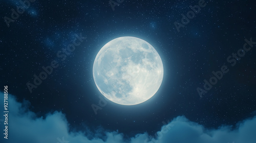 Fototapeta premium big, luminous white moon dominates the starry night sky, surrounded by soft, ethereal clouds, creating a dreamy and romantic atmosphere that feels both peaceful and magical, photo