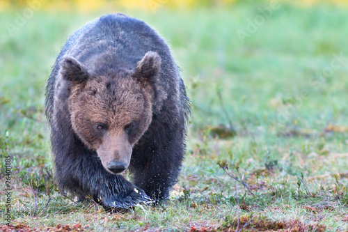 © thakala, Fototapeta premium Big male brown bear walking in swamp