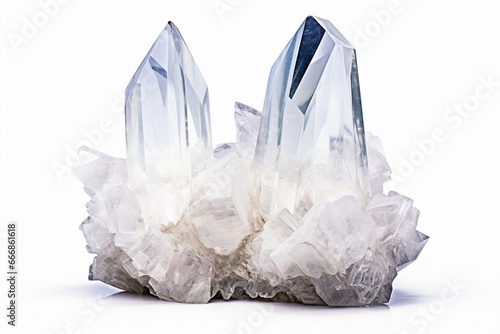 © Generative AI, Fototapeta premium Big natural double quartz crystal isolated on white. : Generative AI