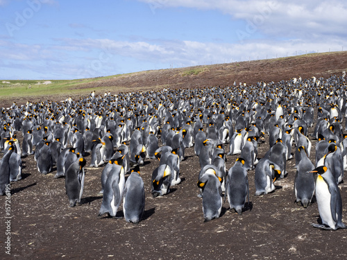 © vladislav333222, Obraz premium Big nesting colony King penguin, Aptenodytes patagonicus, Volunteer point, Falkland Islands - Malvinas