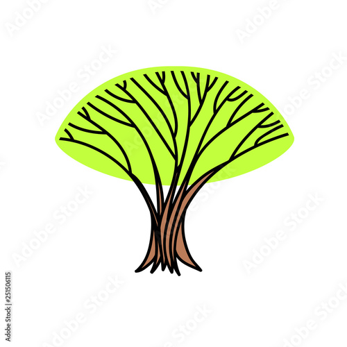 © natalyon, Naklejka premium Big old lonely tree with fresh green foliage, spring illustration, vector
