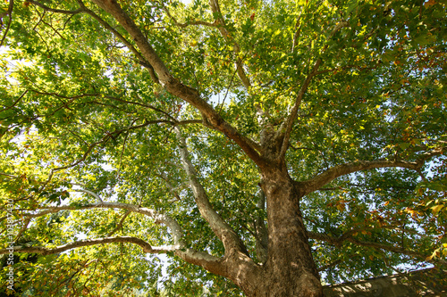 © olegshishkunov, Fototapeta premium big old maple tree in a summer park.