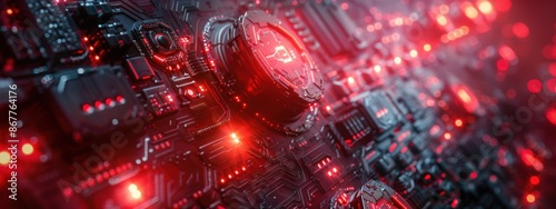 © Usman, Obraz premium Big pillar decorated with red glowing electrical circuits.