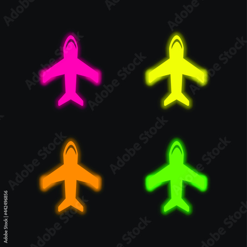 Obraz premium Big Plane four color glowing neon vector icon