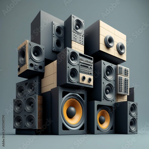 © NovaVision, Obraz premium Big power sound speaker system. Generative Ai