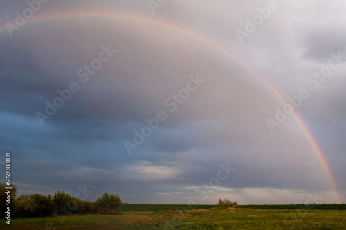 © Olesya, Naklejka premium Big rainbow on the backdrop of a rainy sky