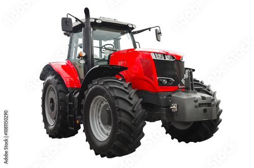 © stefan1179, Obraz premium Big red agricultural tractor, front view